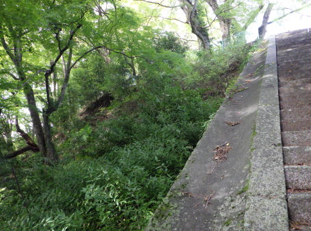 | 境内前方の切岸状の急斜面。 | |
