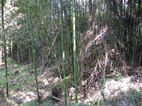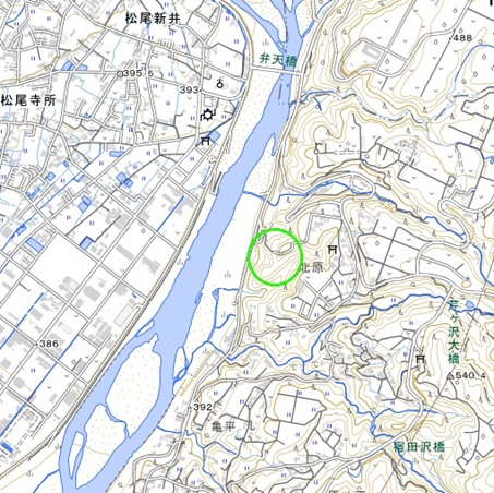 <沿革> 城主として、知久氏家臣・平沢藤左衛門や平沢備前守道正の名が伝えられているが、 詳細は不明である。 <手記> 天竜川左岸の舌状にせり出した峰を利用した城です。中心部は北原城址公園となって いて、付け根側から牧場を抜けて行くことができます。付け根の鞍部は後世に掘り下げ られている感じですが、おそらく堀切があったのでしょう。 公園は大きく上下2段の削平地から成っていて、脇にある藤棚も、おそらく副郭の一部 と思われます。桜の名所らしく桜の木が数多く植わっているものの、近年は管理が行き 届いていないのか、下草が伸び放題でだいぶ荒れていました。このままだと、あと数年と 経たずに進入も困難になってしまいそうな感じです。 主郭の奥には土塁があり、その上に水神が祀られています。副郭から尾根先へ行くと 出郭があるそうなのですが、上述のとおり城山自体が荒れていて、とても頑張る気には なれませんでした…。 |