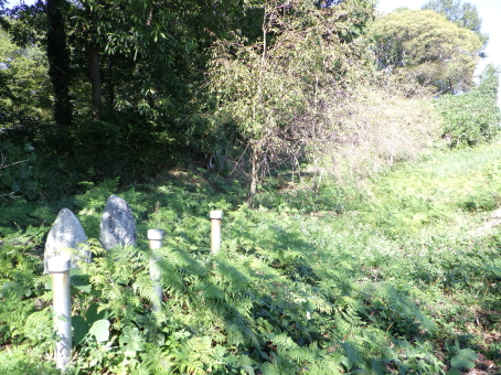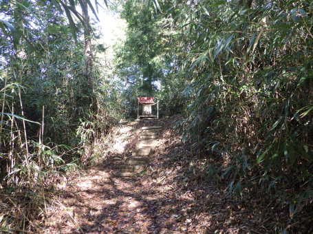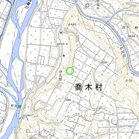 <沿革> 林氏(林康秀)ついで伊久間氏が拠り、神之峰城主知久氏の支城として機能したとみられている。 林氏は今日の豊丘村林里・林原付近が本貫と推測されるが、詳細は不明である。また、伊久間氏 との関係についても定かでない。 <手記> 天竜川左岸の第一段丘上に築かれた城です。伊久間城のある段丘面は、地元の人をして喬木村 最大の営農地区として真っ平らに造成されており、遺構はほとんど破壊されているようです。南北に 谷戸が入り込んだ小規模な突端地形を利用しており、林と農地の境には堀跡にも見える凹地形が 延びているものの、断言はできかねます。 林に入るとすぐに「三ツ峰様(城山)大口真ノ神」と書かれた標識が立っており、これが城内で唯一 「城」に触れたよすがとなります。標識に向かって右手に折れると、三ツ峰様の小さな祠が土塁上に 祀られています。この土塁は藪の中に続いていて、背後は空堀になっているように見えるのですが、 いかんせん草木が繁りすぎていてよく分かりません。また、祠の南西側が主郭と推測されるものの、 こちらも断定はできかねます。 標識の奥へ進むと、麓へ下りる九十九折れの旧道が今も延びています。営農地区にいた地元の 方によると、造成される前は桑畑が広がっていて、麓の集落から毎日この道を上り下りしていたのだ そうです。伊久間城のすぐ南には伊久間館があったとされ、林氏や伊久間氏はこちらに常住していた とも考えられます。 |