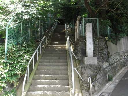 | 稲付城址への石段と城址碑。 | |