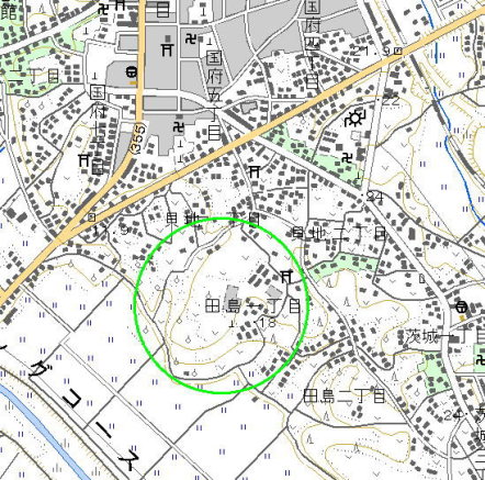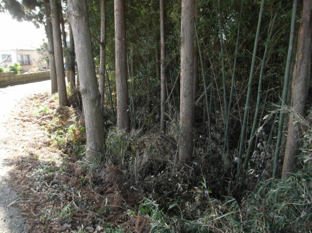 <沿革> 建保二年(1214)、大掾資幹がこの地に館を営んだのがはじまりとされる。大掾氏は、平国香の子 貞盛にはじまり、貞盛の養子で甥の維幹が常陸大掾に任じられたことから、大掾を姓とした。資幹は、 大掾氏庶流吉田氏の分家馬場氏の出身であったが、嫡流の多気義幹が失脚したため、大掾氏宗家 を継いだ。 南北朝時代に城郭として整備されたとみられ、現地説明板によれば『税所文書』に大掾高幹の居城 として「府中石岡城」が登場する。高幹の子詮国は、貞和二/正平元年(1346)から5年をかけて、 常陸国府跡に府中城を築城して移った。以降石岡城は外城(とじょう)と呼ばれ、府中城の支城ないし 出城として位置づけられることとなった。 現地説明板によれば、近世後期の地誌類に、外城の城主として石岡某・札掛兵部之助・田島大学 などの名がみられるという。現在城跡の一角に鎮座する札掛神社は、大掾詮幹の家臣札掛民部介に よって創始されたものと伝わる。 天正十八年(1590)の小田原の役で、大掾氏は北条氏に与したため、戦後その領地は豊臣秀吉 に与した佐竹義重に与えられた。義重は同年十二月に府中城を攻め、大掾清幹は自害し、大掾氏は 滅亡した。このときに外城も廃城になったとされるが、府中城攻防にともなう戦闘が外城でもあったか はどうかは不明である。 <手記> 石岡城は、恋瀬川の河岸段丘の一端を利用して築かれた城です。同じ段丘上の北西700mほどの ところに府中城があります。 城の北東隅に札掛神社があり(現在は岡田稲荷神社と合祀か)、その鳥居脇に説明板が設置され ています。この神社の北側に、城内最大の遺構のひとつである土塁と空堀があります。 主城域は神社のひとつ西側の舌状台地上にあり、現在は広大な畑地となっています。その畑地を 南北に分断するように空堀が残っています。この堀は藪に覆われていて底が見えないのですが、幅 はみてとることができます。この堀によって、今でも南北の畑地の間を行き来することができません。 造成の際に邪魔だからと埋められても仕方ないような堀なのですが、それがこのようにしっかり残って いるというのは、ほとんど奇跡のように感じました。畑地の両サイドは切岸状になっているのですが、 当時のままなのかどうかは判別できません。 神社北側の道を西に進んで鉤手に折れる部分は、本丸の北東隅にあたり、地元では鐘撞堂と呼ば れています。この箇所は、本丸北東隅にでっぱりのように張出しています。鐘撞堂とは、一般に狼煙 が上げられない雨のような日に緊急を伝えるために鐘を鳴らす施設を指し、ここには文字通り鐘撞堂 や狼煙、物見のための施設があったものと推測されます。鐘撞堂はじめ、本丸の周囲の畑地は一段 低くなっており、堀跡と思われます。 石岡城は、府中城が常陸国府跡に建てられているのと同様、茨城郡家跡に築かれたとされ、土中 からは条里制遺構が見つかっているということです。石岡城の本丸が舌状台地の先端ではなく、一段 奥まったところにあるのは、郡衙跡を利用して資幹が館を築き、その館跡を本丸として城塞化された ためではないかと推測されます。 |