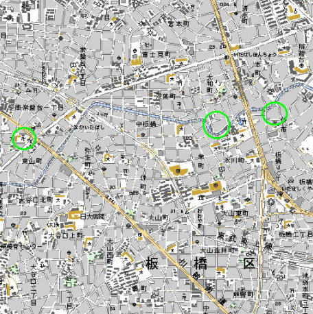 | その3、板橋宿脇の石神井川屈曲部。 河川改修により、旧流路が自然公園となっています。 |