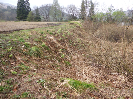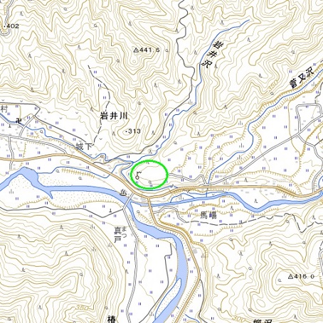 <沿革> 土豪・岩井川兵部大輔の居城とされる。慶長五年(1600)の関ヶ原の戦いに際し、最上家臣・ 丹与惣左衛門が田子内城へ攻め寄せると、兵部大輔および手倉館主手倉国平が手勢を率い 応援に駆けつけた。これを受け、惣左衛門は山間の険阻な田子内城の攻略は難しいと考え、 戦わずに撤退したとされる(『奥羽永慶軍記』)。 翌年の小野寺氏改易によって岩井川氏も没落し、岩井川城も廃城となったと推測される。 <手記> 合居川と岩井沢に挟まれた峰先が岩井川城跡とされています。現況は広大な更地で、先端 に何かの電波塔が建っています。遺跡地図によればかつてグラウンドがあったようで、「遺構 あり」とあるのですが、それらしきものは見当たりませんでした。 周囲の斜面の林をぐるっと歩いてみたものの、小さな祠があるのみで城館に結びつきそうな 地形はやはり見られません。山頂部に削平地や堀を施した程度の小城館だったでしょうから、 グラウンド建設によって消滅したと考えるのが普通でしょう。 とはいえ西麓には城下、合居川を挟んだ対岸には馬場といった地名が残っており、それなり に地域の中心地として機能していた様子はうかがえます。 |
