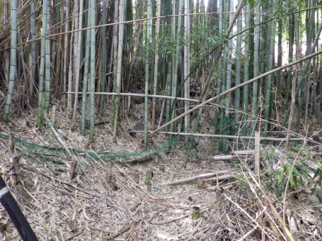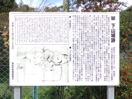 <沿革> 甲斐源氏・加賀美遠光の子・秋山光朝の子ないし孫にあたる小太郎光重が、建仁年間(1201〜 04)に下山へ入植して下山氏を称したとされる。光重の子・兵庫介光基は文応元年(1260)に館の 一隅に平泉寺を建立し、同十一年(1274)に日蓮が身延山に入ると、光基の子・次郎も翌十二年 (1275)に日蓮宗に帰依して身延山に入山した。建治三年(1277)には光基も日蓮の門下となり、 平泉寺を長栄山本国寺と改めて屋敷の敷地を寄進した。その後の下山氏については定かでない。 明徳三年(1392)の明徳の和約で南北朝が統一され、巨摩郡南部の南部政光が奥州へ移ると、 巨摩郡北部の穴山を本貫とする穴山満春ないし穴山信介が河内地方へ進出した。満春は甲斐国 守護職・武田信満の弟で、応永二十四年(1417)に上杉禅秀の乱に加担して兄と共に戦死した。 信介は信満の嫡子・信重の次男で満春の跡を継いだとされるが、宝徳二年(1450)に信介が死去 すると、同年中に満春の子ともいわれる穴山伊豆守が信重を殺害している。したがって、本貫地の 伊豆守と別個に信介が河内領へ入り、兄と共に勢力拡大に努めていたとも考えられる。 信介のころは旧南部領が所領の中心で、下山氏の館跡を居城としたのは信介の子・信懸の代に なってからともいわれる。ただし、信懸の史料上の初出は、文明十六年(1484)に堀越公方・足利 政知の家臣・狩野道一の案内で、義兄弟にあたる甲斐守護・武田信昌の名代として武蔵の称名寺 を参拝したとする、同寺の記録とされる(『鏡心日記』)。信介の嫡子として跡を継いだのであれば、 信介の死から34年も記録に見られないのはやや不自然であり、両者の父子関係にも疑念が持た れるが、確証はない。 信懸もまた、永正十年(1513)に一子・清五郎に暗殺された(『勝山記』)。背景には信懸が駿河の 今川氏と懇意にしていたことがあるともいわれるが、詳細は不明である。跡を清五郎の兄弟である 信風(信綱)が継いだが、清五郎のその後は定かでない。信風もまた自立性が高く信昌の孫・信虎 とはしばしば対立したとみられている。享禄四年(1531)に起きた河原辺の戦いと同日に没している ため、信虎と反乱軍が衝突したこの合戦で討ち死にしたと推測されている。この戦いには、下山の 北隣の飯富を領する飯富虎昌も反乱軍方として参戦している。 信風の子・信友は、信虎と和睦してその次女を正室に迎えた。彼女は下山御南殿と呼ばれている ことから、遅くとも信友の代には下山城が河内穴山氏の居城であったと考えられる。その後、信虎は 今川氏と同盟を結び、信友は信虎の嫡子・晴信(信玄)の義兄にあたることから、穴山氏は武田氏の 外戚として安定した勢力と自立性を確保できるようになった。梅雪斎不白の号で知られる信友の子・ 信君もまた信玄の次女を妻とし、信玄の甥にして娘婿という一門衆でもとくに有力な地位にあった。 信君は信玄の跡を継いだ武田勝頼とは折り合いが悪く、天正十年(1582)に織田信長が武田攻め を敢行すると、徳川家康の調略を受けて内応した。まもなく武田家が滅ぶと、河内領と駿河江尻領を 安堵されている。しかし、同年に本能寺の変が起こると、家康らと共に堺を見物していた信君は家康 一行と離れて本領への帰還を図ったものの、宇治田原で一揆の襲撃を受けて落命した。 後にはわずか10代の信君の嫡子・勝千代が残り、家康の庇護のもとで家督を継いだ。しかし、実際 には家康が穴山衆を家臣化した形となり、天正十五年(1587)に勝千代が早世すると、穴山家は取り 潰しとなった。これを以て、下山城は廃城となったとみられるが、確証はない。信君は秋山虎康の女 を養女として家康に嫁がせており(下山殿)、彼女が同十一年(1583)に出産した万千代は、勝千代 の名跡を継いで武田信義(信吉)を称した。下山城は信義の持ち城として、同十八年(1590)に家康 が関東へ移封されるまで存続したとも考えられる。 <手記> 武田家滅亡の要因の一つとなったことで有名な穴山梅雪の居城です。今は本国寺の立派な境内と なり、山門脇に石碑や説明板が建っています。古絵図によると、二重の土塁で囲まれていたようです が、とりたてて要害性は認められません。下山「城」というよりは、鎌倉時代の武士の居館をそのまま 拡張した広大な館城だったのでしょう。 説明板には保育園の東側に堀や土塁の一部が残っているとあり、当該の箇所にはたしかに堀跡状 地形がみられ、その南側は鉤字に折れていました。遺構とすれば貴重かつ立派なもので、梅雪ないし 勝千代時代に改修されていたものと推察されます。 同じく勝頼を裏切ってトドメを刺した小山田信茂でさえ地元では「郡内を兵火から救った」と好意的に 評価されているにもかかわらず、梅雪はとかく印象を好転させる要素に乏しく、現地でもとくに言及すら されていません。身延山がすぐ近くなので、そちらに話題がかっさられているのかもしれませんが^^; |
