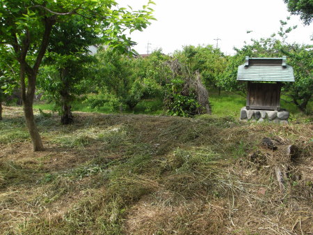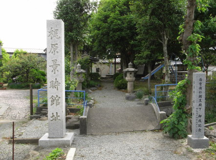 <沿革> 梶原氏は坂東八平氏の1つ鎌倉氏の一族で、鎌倉景通の子景久にはじまる。景時は 景久の曾孫にあたり、治承四年(1180)の石橋山の戦いで源頼朝を見逃した人物として 知られる。後に頼朝のもとで侍所所司に任じられ、源義経や畠山重忠を讒言するなど、 影響力をもった。 正治元年(1199)、頼朝が没して頼家が将軍に就くと、「十三人の合議制」が布かれ、 景時もその一員となった。頼家にも「一の郎党」と重用されていた景時は、結城朝光を 叛心ありとして讒言した。これに対し、日ごろ景時をよく思っていなかった御家人たちの 怒りが爆発し、御家人66人の連名による連判状が作成された。同年十一月十二日、 景時は一言も弁明することなく、失脚して一宮の館へ一族とともに退いた。 翌二年(1200)一月、景時は一族を伴って上洛せんと図ったが、駿河国で捕捉され、 悉く誅殺された。景時の弟朝景が梶原氏の家督を継いだが、建暦三年(1213)の和田 合戦で討ち死にした。一宮の館が景時上洛時点で廃されたのか否かは詳らかでない。 <手記> 梶原景時館はJR寒川駅の南東にあり、西に田村の渡し、東に現在の中原街道があり ます。また、館の眼前を東西に大山道が走り、田村の渡しの先で南北に走る田村道と 交差します。さらに北には、寒川神社の参道とそれに続く目久尻川沿いの街道があり、 交通の要衝にあったことが分かります。 館南東隅と考えられているあたりに天神社があり、その入り口(上の地図の緑点)に 石碑と説明板が設置されています。天神社の前から細い水路が東方へと続いていて、 内堀伝承地とされています。上の地図では直線で示しましたが、実際にはかなり複雑に 折れ曲がっています。 また、天神社の北東、宅地裏の畑地内には土塁が残っています。この土塁は西側で 折れてさらに北方へ向かっていたと伝えられ、道路に沿った外堀跡とされる水路につな がっていたとされています。 これらの断片的な痕跡を総合すると、一宮館はかなり規模の大きい城館であったこと が推測されます。史料上は2か月足らずしか登場しない一宮館ですが、これだけの規模 の館が景時の失脚前後に急ごしらえで造られたとは、にわかには信じられません。おそ らく、失脚以前に少なくとも前身となる館はすでにあったものと考えられます。 |