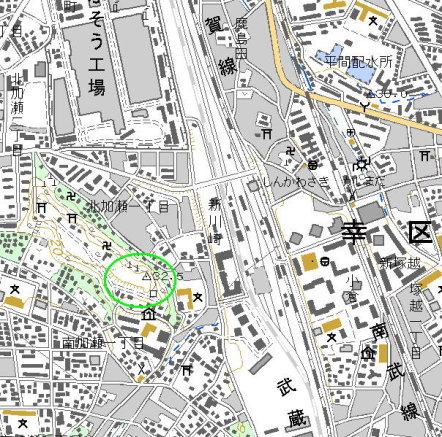 | 新川崎駅付近から加瀬城址を望む。 | |