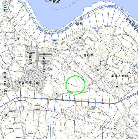<沿革> 手賀の杜ニュータウンのある岩井台地の先端付け根に城山の小字があり、 かつては堀跡が残っていたとされる。史料にはみられず、築城主や年代など 詳細は不明である。 <手記> 現在、鹿島城址とされる丘陵は野球場や砕石置場の建設により切り崩され、 ほぼ消滅しています。台地の南辺が細長く崩し残されており、南麓から登る ことができます。ただ、明確な城館遺構はみられず、あったとしても、造成に よるものか判別できないでしょう。また、この箇所の小字は「向山」というそう です。 比定地は舌状を成しているものの、頂部の面積が広く、地形を余すことなく 使おうとすると、周辺諸城に比べて著しく巨大な城となってしまいます。堀跡 しか確認されていなかったということから、おそらく崖端を利用した館城だった のではないかと推測されます。 |