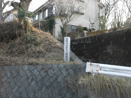 <沿革> 武蔵七党の1つ西党に属する川口氏の居館跡である。川口氏は、西宗貞の孫の次郎大夫にはじまると される。次郎大夫の後、川口氏は八郎太郎景綱、太郎長季、兵庫介幸季と続いている。兵庫介幸季は、 応永年間(1394〜1427)に長楽寺に薬師如来像を寄進したと伝えられる。 幸季以降の川口氏の動向は不詳である。 <手記> 川口氏館は、川口川と北浅川に挟まれた台地の一端にあり、眼下を秋川街道が走る交通の要衝です。 正確な位置は今なお明らかではないようですが、地誌などの記述から大まかな範囲が推定されているよう です。 現在、比定地一帯は畑地となっており、一角に地元有志が建てた館跡碑があります。また、館跡へ上る 小道と秋川街道の角に館跡入口の碑まで建てられています。 |
