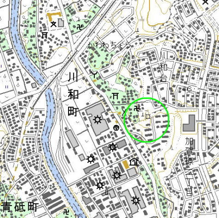 <沿革> 『新編武蔵国風土記稿』によれば、川和町の城根山妙蓮寺は、「川和城塁」の城地に 建てられたものとされる。また、付近には「城山」「城山下」「城山根」「城古場」といった 字名が残っている。ただし、城主や築城の経緯などについては伝わっていない。 『探訪ブックス 関東の城』には、川和城について「熊井氏伝説」が残るとあるが、どの ような伝説であるかは不明である。 <手記> 「城根山」というくらいですから、妙蓮寺の裏山が城跡といわれています。ただし、港北 ニュータウンの開発にともなって墓地を整備し直したということで、城山一帯はきれいに 墓苑化されています。以前は土塁状遺構が残っていたということですが、今ではそれも 見られません。 川和城山は、鶴見川河岸の丘陵から少し飛び出た小峰で、東側は小さな谷戸地形を 形成しています。『日本城郭大系』では、現在川和団地となっているこの谷戸に居館が 営まれていたのではないかと推測しています。 |