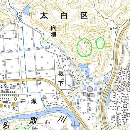 <沿革> 天正年間(1573〜92)ごろ、伊達家臣茂庭駿河守定直によって築かれたとされる。 茂庭氏は、河村城主河村氏の後裔で、定直の父政秀の代に茂庭氏を称して伊達家臣 となったとされる。 天正十七年(1589)、定直は田村氏の援軍として派遣され、岩城氏らの軍勢と戦って 討ち死にした。定直の子定元が跡を継いだ。廃城時期は不明だが、仙台城築城後は、 青葉山に繋がる山林が「御裏林」として厳しく管理されたことを考えると、遅くとも関ヶ原 の合戦からほどなくのころと推測される。 なお、河村系茂庭氏は、伊達三傑として知られる茂庭(鬼庭)綱元とは系譜上の関係 はないものとみられる。 <手記> 旧茂庭村、今の生出地区を取り囲むように、けんとう城のほか、茂庭峰館、茂庭西館、 茂庭大館があります。これらのうち最も東側に位置するけんとう城が、茂庭氏の本城で あったと推測されています。江戸時代に編纂された『仙台領古城書立之覚』には、けん とう城に付随する4つの城があったとされ、残る1つは茂庭小館とも茂庭東館ともいわれ ています。 けんとう城は、名取川に臨む山の頂(地図上の左側の丸)にあり、その峰続きの東側 には茂庭東館(右側の丸)があったとされています。かつて行われた調査では、空堀や 削平地が認められたいうことですが、現在山へ登る道はまったくなく、周囲は浄水場や 工場敷地となっていて山肌に取りつくことすら困難です。 山の北西麓は、材木業者によって伐採が行われているようで、あるいはこれが城山 まで来てくれればと思ったりもしました。「けんとう」という語については、『書立之覚』に みられるものですが、その意味については今なお不明です。 |
