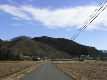 けんとう城遠望。頂の向こうに茂庭東館があります。 |