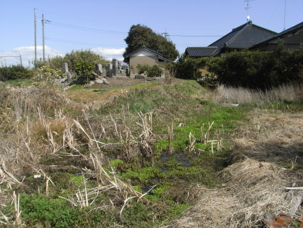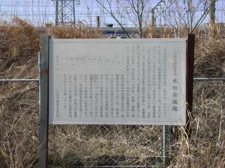 <沿革> 木田余城はもともと木田余台の丘上の字「城の内」というところにあったが、信太伊勢守範宗が 現在の地に新城を築いて移ったとされる。信太氏は紀氏の後裔といわれ、紀貞頼が信太荘司と して常陸国に下向したのがはじまりとされる。信太氏は小田氏の古くからの重臣で、範宗の妻は 主君小田政治の妹とされる。 範宗は、政治の子氏治と不和になり、天文二十三年(1554)に氏治の命令を受けた菅谷勝貞 (その子政貞とも)によって土浦城で謀殺されたと伝わる。ただし、範宗殺害については永禄十二 年(1569)の手這坂の戦いの後とする説もある。『烟田日記』には、永禄十三年(1570)の一月に 氏治が木田余城主「信田某」を土浦城で殺害したことが記されている。また、佐竹氏側の手這坂 の戦いに関する史料には、「信田伊勢守」が決戦を避け撤兵することを氏治に進言したとある。2つ の「信田」氏が範宗を指すとすると、範宗は手這坂の戦いに消極的であり、同戦の敗戦後氏治に 疎まれて殺害されたものと類推できる。また、天文二十三年に殺されたとすれば、その後も一族 の誰かが木田余城主を継ぎ、永禄十三年に再び謀殺されたという可能性も考えなければならない。 いずれにせよ、木田余城主信太範宗が主君小田氏治に殺されたという事実は変わらないようだ。 ちなみに、菅谷勝貞は範宗の叔父信太範貞の養子となっていたとされる。 信太氏謀殺後、木田余城は菅谷氏の持ち城となった。手這坂の戦いでの敗戦によって、氏治は 居城小田城を失い、菅谷氏の土浦城に身を寄せた。以降、氏治は土浦城や木田余城を仮の居城 として行き来していたとされる。氏治は勝貞・政貞父子の補佐を受けながら、小田城を奪還すべく 佐竹義重と争うが、逆に追い詰められていった。天正六年(1578)、佐竹軍との激しい攻防の末に 木田余城は落城し、義重によって徹底的に破壊された。 <手記> 現在、木田余城址は常磐線の線路と車両基地に中央を貫かれている格好となっており、遺構の 確認は困難です。線路の南側に説明板が設置されています。また、この説明板の裏から線路を くぐって階段を上ると、線路と基地の間に肩身狭そうに城址碑が建っています。その両脇には2体 の石仏があり、水が供えられているので、おそらく範宗らの供養碑なのでしょう。 説明板北東の踏切脇には、土塁のような盛り上がりがあります。古絵図によれば、このあたりが 城の北東隅になるということで、遺構である可能性は十分考えられます。踏切を渡って城の北辺に でると、不自然に水を湛えた池があります。また北辺の道路の城側は道路より一段低くなっており、 これら総じて北辺の堀跡であると推測されます。 全体的に畑や住宅や線路となって徹底的に破壊されていますが、よくよくじっくり歩いてみると、 そこかしこに痕跡を見つけられるような気がします。 ちなみに、上の地図にある田んぼマークは、すべて茨城特産のレンコン畑です。表面上は水田と まったく変わりませんが、こちらは年中水を張っているようです。3月中ごろに訪れましたが、満々と 水を湛えたレンコン畑が見渡す限りに広がっており、滅多にみられない勇壮な景観だと感じました。 さらに全くの余談ですが、コーエーの信長の野望シリーズの「天下創世」では、ひさしぶりに大名 扱いとなった小田氏の居城がなぜか一貫して木田余城だったことをよく覚えています。 |