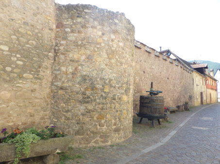 <沿革> 785年に、ホーネスハイムの名でフルダ修道院の財産台帳に登場するのが史料上の初出と される。12世紀にはエギスハイム=ダグスブルク伯の支配下にあった。1225年に同家が断絶 すると、プフィルト伯が継承したとみられる。 1281年、プフィルト伯はキーンツハイムをハプスブルク家に譲渡し、ホーランズベルク城代の オクセンシュタイン家の統治に委ねられたとみられている。1360年代後半、アンゲラン7世・ド・ クシー率いるフリーカンパニー(傭兵団)に襲われ、町は荒廃した。1347年、キーンツハイムは ハプスブルク家から都市権が与えられ、都城化が進められたとされる。 1399年、ルプフェン家が新たな領主となり、1411年にヨハン・フォン・ルプフェンが都城内に 宮殿を造営した。1562年にはラツァルス・フォン・シュヴェンディがキーンツハイムを購入した。 翌年には宮殿が拡張されているが、1583年にラツァルスが没すると、シュヴェンディ家の人々 がキーンツハイムに居住することはなく、カーケネック家が代官として町を統治した。 1612年、婚姻によりフュルステンベルク=ドナウエッシンゲン家が領主権を継いだが、1679年 にシュヴェンディ家の手に復している。しかし、2年後の1681年には皇帝から所領を没収され、 ジョセフ・ド・モンクラーに与えられた。 城壁など町の防備の多くは、19世紀後半に取り壊された。宮殿(シュヴェンディ城)は、1970 年代に再建された。また1986年には、キーンツハイムにラツァルス・フォン・シュヴェンディ都市 同盟が設立されている。 <手記> キーンツハイムはコルマールの北西郊外にある小さな街です。グーグルマップで見ると城壁 や堀などが残っているようなので、西隣のケゼルスべールを訪れたついでに、歩いて立ち寄り ました。 都城の遺構は断続的によく残っていて、とくに北西端と北東端には城塔が、東辺には2か所 に城門が建っています。そのうち南側のラリ門を抜けると、左手にシュヴェンディ城の宮殿が あります。 旧市街は中近世の街並みの趣を残していて、ワイナリーや宿泊施設もいくつかあるようです が、私が訪れたときはとにかく静かで人影もまばらでした。世界的に有名なコルマールが本命、 ケゼルスベールが連下とすると、キーンツハイムも大穴の観光スポットといってよいでしょう。 ちなみにヴォージュ山脈沿いに北上すると、同じアルザスにキンツハイム(Kintzheim)という 似た名前の村があります。 |