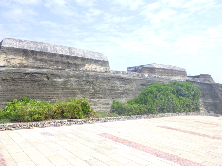<沿革> 1683年に鄭氏政権が清朝に降伏すると、旗後には100名の兵士が配置された。1720年 編纂の『鳳山県志』によれば、このときまでに中国式の大砲6門を擁する砲台が築かれて いた。1840年のアヘン戦争に際し、清朝は旗後の砲台を強化したとされる。 1874年に日本が台湾出兵を行うと、清朝は台湾防衛の必要性を認め、イギリス人技師・ J.W.ハーウッドを招聘して打狗港防衛の要塞整備に乗り出した。欣差大臣・沈葆楨は旗後 を4門の砲座をもつ砲台に増強した。 1895年に台湾が日本へ割譲されると、反対する勢力が台湾民主国を自称して抵抗した。 下関条約に先立つ同年2月1日、旗後砲台で約1トンもの火薬が爆発し、100名ほどの兵士 が死亡している。10月15日、日本艦隊が打狗港へ進軍し、砲撃によって城門に揮毫された 「威震天南」のうち威震の2文字が損傷した。このとき司令官の劉成良は既に安平(台南) へ向かっており、指揮官を欠く砲台ではわずか5発が応射されたのみで、砲台はその日の 午後に占領された。 日本統治時代には大砲は撤去され、太平洋戦争中には高射砲台として利用された。 <手記> 高雄の由来となった打狗(ターカウ)の湾口を挟み込む左右の丘陵のうち、南側の旗後山 に築かれた砲台です。最終的には太平洋戦争中に改修されているため、砲台内部はほぼ コンクリートのように見えますが、北辺などは清朝時代の石造部分が残っているようです。 また、北東隅の城門は中国式のまま残されており、上述の2文字が欠けた扁額もそのまま でした。全体的には太平洋戦争時代の遺物という感じですが、こうしてところどころ清朝の ころの名残も見受けられるので、探しながら歩くのが楽しいかと思います。 |