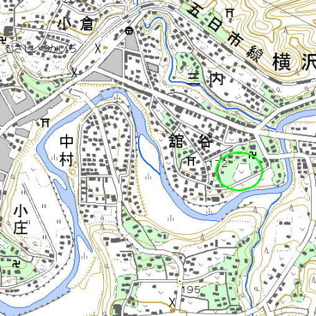 <沿革> 『武蔵名勝図会』に、「来住野氏が先祖の住せし地なるべし」とある。来住野氏は、15世紀ごろを 中心に秋川流域を根拠地とした在郷武士団である武州南一揆の一員とされる。その後、来住野氏 は北条氏照に仕え、北条氏滅亡後は同地に帰農した。江戸時代初期の八王子千人同心の1人に 来住野徳兵衛という人物がおり、来住野氏の一族とみられる。徳兵衛家には、氏照重臣横地監物 から来住野大炊助へ宛てた書状が伝わっている。そこには、大炊助のほか来住野大蔵丞の名が あり、惣領である大炊助と大蔵丞との間には上下関係があることを確認する一節がある。 『図会』によれば、悲願寺にある天文十九年(1550)の棟札に檀那来住野大蔵とあるという。この 大蔵はさきの大蔵丞と同一とも考えられるが、詳細は不明である。 同書状には、大炊助に対して、私市右馬助なる人物に調度品を買い与えるよう指示する内容も みられる。来住野氏と私市氏の関係は不明だが、江戸時代には舘谷村の名主職が来住野氏から 私市氏へと移っている。 また『図会』には、来住野十郎兵衛なる者が北条家から感状2通を受けたとあるが、詳細は不明 である。さらに、『図会』で網代城主と推測している貴志氏と来住野氏の関連を指摘する向きもある。 <手記> 来住野氏館は、舘谷集落の正光寺から八幡神社の間にあったとされています。舘谷は秋川の 屈曲部の内側にあり、三方を秋川に囲まれ、北にも小谷が入り込む要害・要衝の地です。 『日本城郭大系』には記載がなく、現代の文献でこの館を扱っているのは管見の限り田中祥彦氏 の『多摩丘陵の古城址』のみです。田中氏が訪れたころには集落内に土塁が散見されたということ ですが、宅地化の進んだ今日では痕跡を見つけるのはかなり困難です。 田中氏は館の中心を八幡神社付近と推測していますが、私は正光寺と八幡神社の中間あたりに ある私市氏の居宅あたりではないかと考えています。集落内には現在も来住野姓や私市姓のお宅 がありますが、この私市氏の居宅はひときわ立派な屋敷で、かつては三方に土塁が残っていたよう です。今は片側しか残っていないようですが、ここを中心として二重の土塁をもつ崖端の館と考えると、 田中氏の概略図とも整合します。 |