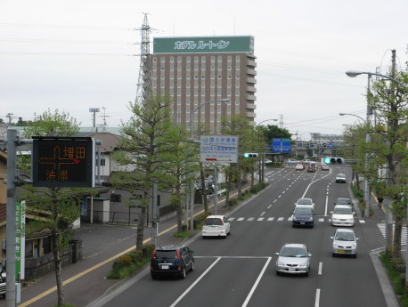 <沿革> 土豪粟野大膳宗国が、茂ヶ崎城から居城を移し、天正年間(1573〜91)まで在城したとされる。 伊達政宗が勢力を拡大すると、宗国はこれに従ったが、天正十八年(1890)に領地替えとなった。 北目城には、代わって屋代勘解由兵衛景頼が入った。 関ヶ原の戦いに際して、京都から帰国した伊達政宗は、居城であった岩出山城には戻らず、この 北目城を上杉攻めの拠点とした。本戦での東軍勝利の報に触れた政宗は、北目城から急遽伊達・ 信夫郡への軍を起こした。 戦後、遅くとも仙台城築城までには廃城になったものと考えられる。 <手記> 北目城は、現在の仙台バイパス鹿又交差点付近にあったようです。平成四〜五年(1992〜93) の発掘調査では遺構が発見されたそうですが、今では完全に市街地化してしまったため城の痕跡 を見ることはできません。ただし鹿又交差点周辺は、道路建設に伴う造成ということを勘案しても幾 らか微高地にあるようで、北と東を広瀬川に、南を名取川に洗われるこの地は、要害であるとともに 古くから交通の要衝でもあったようです。 交差点の北西側、ブックオフの北隣の空き地に案内板があるということでしたが、訪れたときには 探せど探せど見つかりませんでした。いつの間にやら何らかの理由で撤去されてしまったようです。 その後しばらくして、同じ場所を所用により自動車で通りかかったところ、新しい標識が建てられて いました。 ちなみに、北目城址と長町駅の間には古代の郡山官衙遺跡があります。 |
