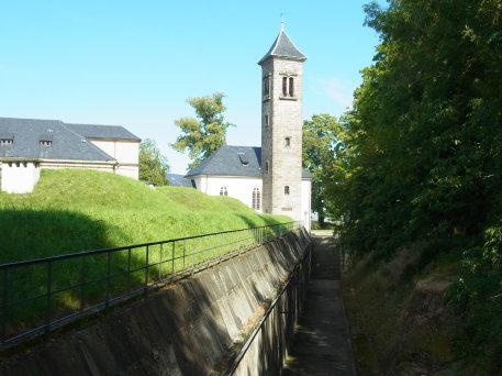 | 要塞内の堀と最古の建物である礼拝堂。 | |