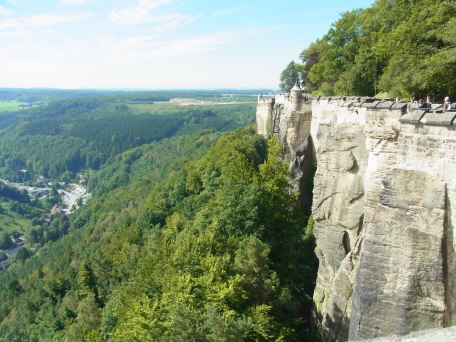 | 稜堡越しにエルベ川峡谷を望む。 稜堡の上には模擬大砲が並んでいます。 |