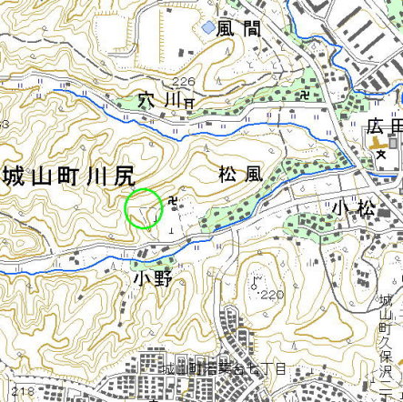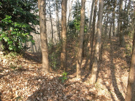 <沿革> 『皇国地誌残稿』に、「里伝ニ建久ノ頃永井某トイフ者 之ヲ築クト云」とある。この 永井某について、鎌倉時代末から室町時代初期にかけて足利尊氏に従い活躍した 長井大膳大夫広秀を充てる説もある。そもそも長井氏は、鎌倉幕府草創期の功臣 大江広元の次男広時にはじまるため、建久年間(1190〜99)とは隔たりがある。 小松城に関しては史料には登場せず、その歴史は謎に包まれている。付近には 「評議原」「自害谷戸」といった字が残り、周辺で合戦があったことをうかがわせる。 <手記> 小松城は、境川の源流に近い宝泉寺の西側の峰に位置しています。北に穴川、 南に小松川が流れ、両者は城の東方で合流します。 小松城の特徴は、東西により高い頂があるにもかかわらず、これらを利用せず峰 の中途に築かれていることです。ここから、小松城が宝泉寺にあったとされる館に 付随した詰の城であるということが見てとれます。同様の選地は、隣市町田市の 小山田城や小野路城にも見られます。 城へは寺の西から階段を上って行くことができます。登り切った突き当りが主郭跡 とされ、小さな祠が祀られています。その背後には、櫓台とされる土盛り状の高台が あります。主郭から南にかけてがもっとも広い曲輪となっていて、兵の駐留スペース だったと思われますが、南半分は墓地の造成によって削られているそうです。 小松城の遺構でもっとも素晴らしいのは、主郭の東に3条、西に2条ある堀切です。 城自体の規模の小ささに比べて、立派すぎるくらいに立派な堀切群だと感じました。 『日本城郭大系』では後北条氏時代までは下らない城とみていますが、堀のようす を一見したところでは、後北条氏初期までは使われていた可能性も十分指摘できる と思います。ただし、狼煙台や在地領主の館以上のものではなかったでしょうが。 小松城の歴史はほとんど明らかになっていませんが、選地上からは鎌倉時代か それ以前に築かれていたものと推測されます。ここで、気になるのが、小松城周辺の 大字を小野という点です。平安後期から鎌倉初期にかけてこの地域に勢力を持った 横山党は、小野氏後裔を称していました。そのため、小松城は横山党あるいはその 前身となる小野氏と関連のある城ではないかという推測が成り立つと思われます。 ちなみに小松城址の周辺は城山かたくりの里として知られ、シーズンには橋本駅 から直行バスが運行されます。 |
