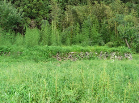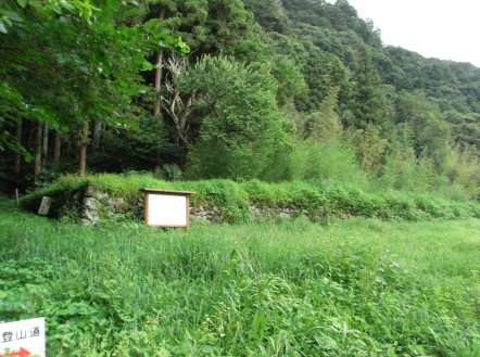 <沿革> 天正十年(1582)三月の織田信長による武田氏攻めにおいて、武田勝頼は居城新府城に 火を放って撤退を図った。このとき、岩櫃城の真田昌幸と岩殿城の小山田信茂がそれぞれ 勝頼の受け入れを表明していた。昌幸は、岩櫃城の西、岩櫃山の南裾に勝頼のための御殿 を造営した。これが古屋館である。古屋館はわずか3日の突貫工事で建造された。 しかし、勝頼は結局信茂を頼る方を選んだものの、信茂が信長に寝返ったために天目山で 自害を余儀なくされた。御殿としての役割を失った古屋館は、後に昌幸の一族とされる根津 潜竜斎という山伏に寺院として与えられ、巌下山潜竜院として明治初期まで存続した。 <手記> 古屋館は、岩櫃山南裾のやや平坦な視界の開けたところにあります。館跡へは、郷原駅 の裏手から小谷の集落へ向かう一本道を突き当りまで登ります。この突き当りに岩櫃登山 ルートの案内板があり、左に進めば密岩通り、右に進めば赤岩通りとなります。館は赤岩 通りの途中にあるので、通りの案内にしたがってしばらく行けばたどり着くことができます。 さらに赤岩通りを進むと、岩櫃城にたどり着くことができ、もともと赤岩通りは岩櫃城の搦手 の山道であったものと思われます。 現在、館跡には土台の石垣だけが残っています。説明板が設置されていますが、すぐ隣 にはクマ出没注意の看板もあります。私は岩櫃城で車の中から子熊を目撃してしまったの で、見学中はずっと気が気でなりませんでした。 もし、勝頼が信茂ではなく昌幸を頼っていたら。とくに真田ファンの人たちなら一度は空想 してみずにはいられない歴史の「もしも」だと思います。その「もしも」の舞台の1つとなって いただろう古屋館も、今は深い山と森の中に埋もれています。 |