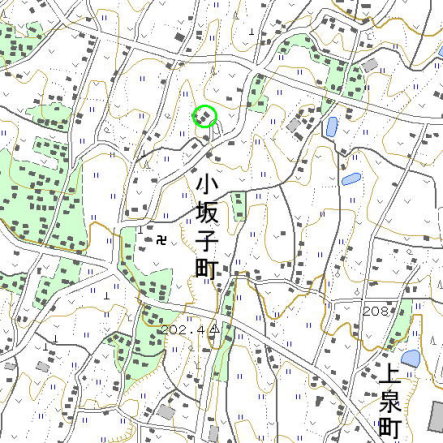 <沿革> 小坂子城同様峰城の支城であったと思われるが、史料にはみられないため詳細は不明で ある。 <手記> 小坂子城は、西に小さな谷戸を望む崖端の城とされています。城跡内に数軒の民家が密集 していますが、城との関連は不明です。 碑や案内などはありませんが、民家の境に『中世城館調査報告書集成』所収の縄張り図と 符合する堀や土塁の痕跡のようなものが見受けられます。現在は城跡の東側に立派な道路 ができていますが、かつては城跡の脇を旧道が南西から北東へ登っていたようです。 要害城というわりには、それほど要害の地形とは思えず、峰城の支城ということから、峰城 へ通じる道の監視や、峰城や小坂子城の死角を補う役割をもっていたものと推測されます。 |