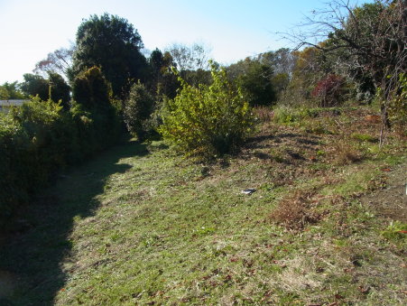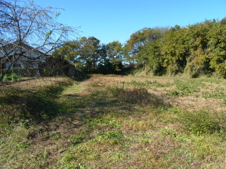 | 堀跡か(画面中央左手)。 右手の藪は土塁跡か。 |