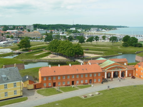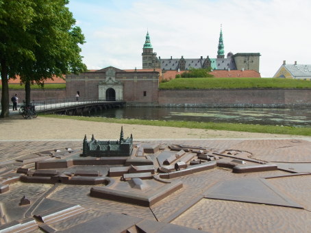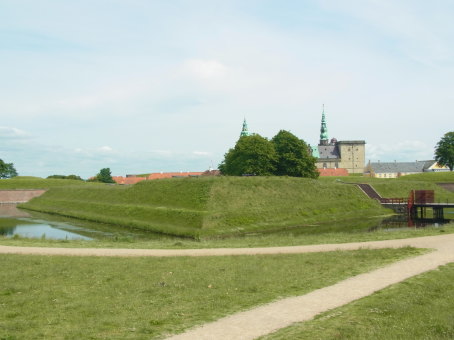 <沿革> 1420年、デンマーク王エーリク7世によって「クローゲン(Krogen)」と呼ばれる城砦が 築かれたのが始まりとされる。クローゲンとはフックという意味で、四隅に監視塔をもつ 1辺80mの方形城館だったとされている。1429年からは、エーレ海峡を通過する船舶 から通行料を徴収するための関所として使用された。 1574〜85年にかけて、城はデンマーク王フレゼリク2世により北方ルネサンス様式に 改修された。普請のさなかの1577年に、城名が現在のクロンボーに改められた。以降、 旧名で呼ぶことは罪に問われることになったとされる。 1629年、2人の使用人のミスにより出火し、城内はほぼ全焼した。クリスチャン4世は 建築家で彫刻家のハンス・ファン・ステーンヴィンケルに再建を依頼し、1639年に完成 した。北方戦争後期の1658年、クロンボー城はカール・グスタフ・ウランゲルの率いる スウェーデン軍によって、3週間にわたる包囲戦の末に落城した。スウェーデンによる 占領は、1660年にコペンハーゲン条約が成立するまで続いた。 1688〜90年にかけて、デンマークの建築家ランバート・ヴァン・ヘイヴンの監督のもと、 クロンボー城は大幅に増強され、当時のヨーロッパで最も堅固な要塞と称された。 1785年以降、クロンボー城は王宮として使用されることはなくなった。1847年には、 エーレ海峡での徴税廃止され、城は兵営という以上の意味をもたなくなった。1923年 には駐留軍も廃止された。1991年までは軍轄であったが、以降は純粋な観光名所と なっている。 ちなみに、クロンボー城は17世紀初頭に執筆されたシェイクスピアの『ハムレット』の 舞台エルシノア城のモデルとされる。しかし、シェイクスピアが自身でクロンボー城や ヘルシンゲルを訪れたという記録はない。 <手記> コペンハーゲンの北、エーレ海峡がもっとも狭くなるところにフック状に突き出た岬に、 クロンボー城は築かれています。すぐ向かいはスウェーデンのヘルシンボリで、こちら にはシェールナンという城跡があり、クロンボーからも望むことができます。クロンボー とはそれ自体が「王の城」という意味なので、クロンボー城というとちょっと重複な感じ もします。 ハムレットの舞台のうえに世界遺産ということで、城跡ファンならずとも人がたくさん 訪れるデンマーク有数の観光名所となっています。私はヘルシンボリからフェリーで 海峡を渡って、クロンボーのあるヘルシンゲル港に行きましたが、船上から海に囲ま れた要塞と宮殿が少しずつ近づき、横目に入港していくのはなかなか興奮しました。 クロンボー城は、方形の宮殿と星型要塞の組み合わせから成っています。宮殿の ある主郭の1つ外側の郭には、西辺から南辺にかけて兵舎や役所などを模した建物 が復元(?)されていて、私が訪れたときにはまだ工事中のエリアもありました。また 西辺には初期から最盛期にかけての城の変遷を示した数体のレリーフ模型があり、 全体像をつかむのには必見です。 方形館の中庭では、夏季にハムレットの名場面が無料で演じられています。全部 観るとけっこう時間がかかるようなので数場面だけ拝見しましたが、いかんせん本物 の劇を見たことがないので、再現度についてはコメントしかねます^^; 入場券は1枚買えばOKですが、城内は礼拝堂や塔の屋上、大広間など、見る場所 ごとに方形館をその都度出たり入ったりしなければなりません。見落としがちと思わ れるのが、地下兵営(カゼマッテ)です。今でも明かりを設けていないので、一寸先も 足元も見えない状態で、広大な地下の空間を歩き回ることになります。幽霊に肩とか 普通にたたかれそうなくらいには怖かったです(笑)。 一時はヨーロッパ最強と謳われたクロンボー城ですが、星型要塞に高層建築がある のはデメリットでしかないので、実際には中世から近世への過渡期的な城砦だったの ではないかと思われます。そのことは、現在の姿になってからは一度も実戦で活躍を していないという歴史的事実からも補強されるのではないでしょうか。 |