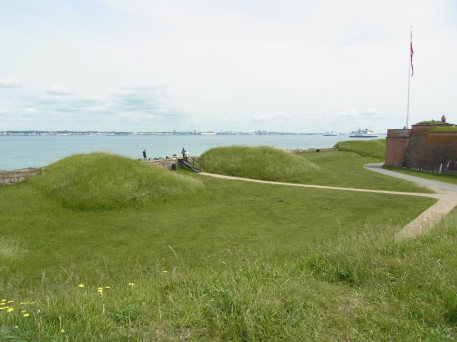 | 稜堡の門の外より。 レリーフ越しに城を望む。 |