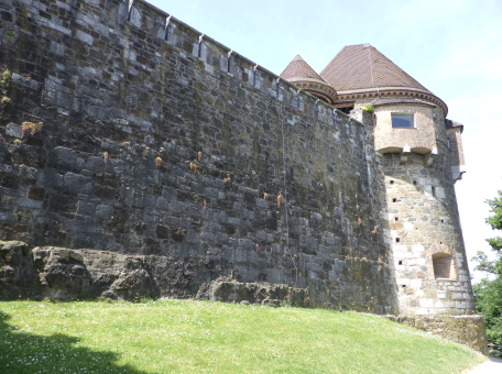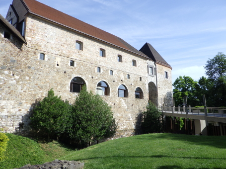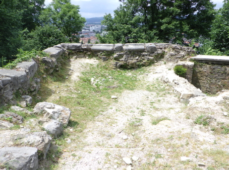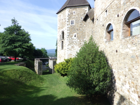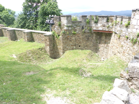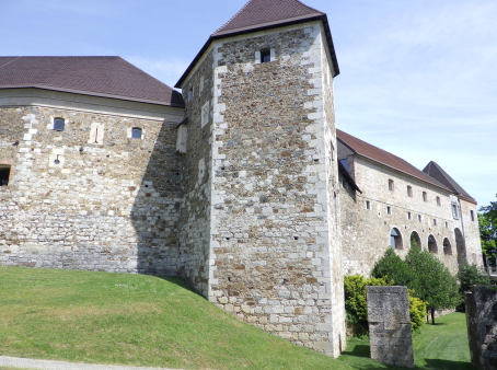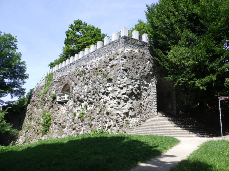 <沿革> 東西および南北の街道が交わるリュブリャナには、紀元前1200年ごろには人々が居住し、 城山には木柵などで囲まれた集落が営まれていたと考えられている。ただし、ローマ時代の 城砦遺構は検出されておらず、軍事拠点としてはあまり重要視されていなかったとみられて いる。 今日に繋がる城館の前身は、11世紀に築かれたと推測されている。史料上は、1144年に ケルンテン公シュパンハイム(シュポンハイム)家が入手したとするのが初出とされる。また ウーディネ大聖堂文書館に、リュブリャナ城周辺の農場をアクイレイア総大司教に寄贈した とする1161年の記録が収蔵されており、1110~20年代の出来事と推測されているが、確証 はない。 1270年、城はボヘミア王オタカル2世によって攻略されたが、1278年にハプスブルク家の ルドルフ1世がオタカル2世を敗死させて城を奪還した。リュブリャナ城は重要拠点として拡張 され、城山および旧市街を包摂する城壁が築かれた。 15世紀に入り、城は神聖ローマ皇帝フリードリヒ3世によっていったん取り壊され、城壁や 礼拝堂、そして大手の2つの城塔などが新しく建て直された。オスマン・トルコの脅威が迫る なか、17世紀にかけて建物の増築や近世要塞化が段階的に進められたとされる。 1797年と1809年の二度にわたり、リュブリャナはフランスのナポレオン軍に占領され、兵舎 や野戦病院として使用された。1815年のウィーン会議により、オーストリア帝国の領邦として イリュリア王国が成立すると、リュブリャナはその首都となったが、リュブリャナ城は刑務所と して利用された。1848年には、今もシンボルとして残る展望塔が設けられ、当初は火の見櫓 として火災時やイベント時などに大砲が撃たれたとされる。 その後も城は監獄として使われたが、居住環境や建物の保存などはほとんど顧みられず、 次第に荒廃していった。1895年にはリュブリャナを大地震が襲い、街は大きな被害を受けた。 翌年に市長に就任したイヴァン・フリバーは、復興に際して都市を新しく設計し、近代化を推し 進めた。1905年にはリュブリャナ城を市の所有物として購入し、博物館として公開することを 計画した。しかし、フリバーの在任下では実現せず、戦後までは低所得者向けの公共住宅と して利用された。 1970年代に至って大規模な改修工事が始められ、現在ではリュブリャナを代表する観光 スポットとして多くの旅行客が訪れている。 <手記> リュブリャナは周知のとおりスロベニアの首都ですが、人口は30万人弱だそうで、都会の 喧騒とは無縁の穏やかで文化的な中規模都市といった感じです。三方をリュブリャニツァ川 が洗う細い峰の頂部に築かれ、日本でも間違いなく拠点城が置かれる立地といえます。 しかしながら、リュブリャナ城の軍事・政治上の活躍は華々しいものとはいえず、戦後に 現在の建物が整備されるまでは牢獄だの病院だの福祉住宅だの、散々な使われ方をして きているのは意外でした。現在は上述の通りリュブリャナの観光名所となっており、麓から ケーブルカーでも上がれますが、大した高さでもないので歩いて登るのがおすすめです。 山頂の背後を堀切で断ち、曲輪の周囲にぐるっと建物を巡らした単郭の城で、防御塔や 五角塔、火薬庫など重厚な防御設備もみられます。シンボルとなっている展望塔は、既存 の聖ゲオルク礼拝堂の屋根上にやや無理やりな感じ生えているため、そこだけいかにも 取って付けたようになっていていささか滑稽に見えます。 展望塔の中階には城に関する解説シアターがあるのですが、これがとってもおすすめ! ダメ元で聞いてみたらなんと日本語ver.があり、しかも文章・発音ともにほぼネイティブで たいへん分かりやすく学べました。 城山の後方には、近世に稜堡が展開していたようですが、モニュメント化された一部の 広場を除いてすべて取り払われたようです。この辺なはずだけど…と公園内を歩き回り、 たまたまいた方に聞いたところ、「ああ、そこだよ」と教えてくれましたが、彼らはそのまま 脇のマンホールにするすると入っていってしまいました。経験上、こういった職業の方々は あまり史跡には興味がない感じなので、あっさりと教えてもらえたのが印象深かったです。 リュブリャニツァ川沿いはとても爽やかな散策コースで、いくつかの橋は観光スポットにも なっています。私は、城山に登る前に川沿いのカフェでスロベニア料理のシュトゥルクリを 堪能しました。 |