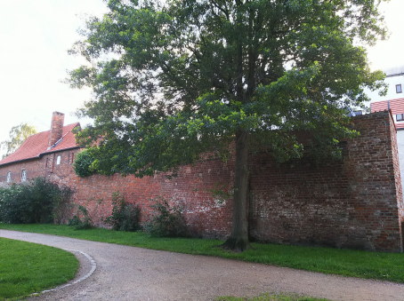 | ブルク門脇のバッテリー状の建物。 このあたりが旧ブク城の中心部と考えられています。 |
