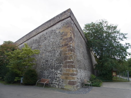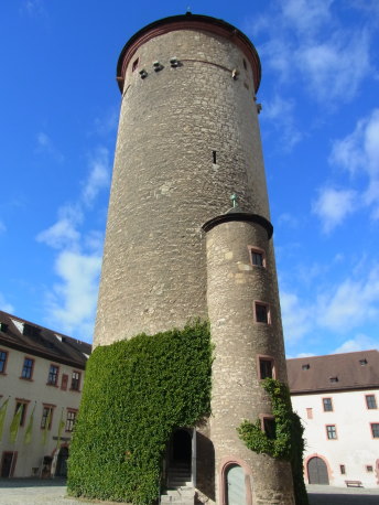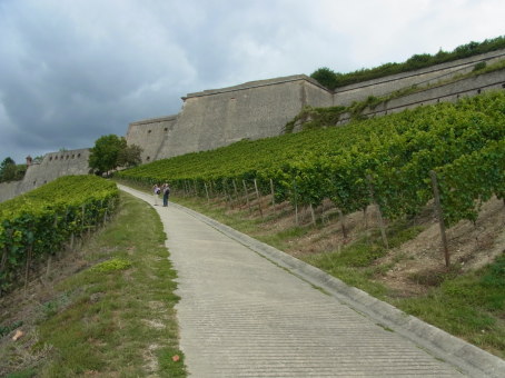 <沿革> 古代には先住していたケルト人の砦や礼拝堂があったといわれている。6世紀ごろから フランク人の入植がはじまり、704年に城山の上に聖母マリア教会が建造された(706年 とも)。この教会に付随してやはり砦が築かれていたといわれ、これがマリエンベルク要塞 の起源とされる。741年ないし742年にヴュルツブルク司教座が置かれた。 1201年、ヴュルツブルク大司教コンラート・フォン・クヴェーアフルトは、マリエンベルクに 主塔や井戸を備えた本格的な城の建築を命じた。当時、シュタウフェン家とヴェルフ家の 間の皇位争いが先鋭化しており、コンラートの3代前の大司教であったフィリップ・フォン・ シュヴァーベンは、シュタウフェン派に擁立されてドイツ王に就いていた。狭義のマリエン ベルク要塞の歴史はこのときからはじまる。1253年からは大司教が実際に住み、執務を 行うようになり、18世紀まで大司教の居館として機能した。 ドイツ農民戦争さなかの1525年、宗教改革を唱える一揆勢はヴュルツブルクを囲んだ。 大司教コンラート2世・フォン・チューリンゲンは一時ハイデルベルクのプファルツ選帝侯の もとへ逃亡したが、シュヴァーベン同盟の諸侯軍らとともに舞い戻り、マリエンベルク要塞 に立て籠もった。要塞は、廷長ゼバスティアン・フォン・ローテンハーンやヴュルツブルク 司教座大聖堂首席司祭フリードリヒ・フォン・ブランデンブルク=アンスバッハらの活躍も あって、持ち堪えることができた。 1572年に火災によって城館の一部が焼け落ちると、大司教ユリウス・エヒター・フォン・ メスペルブルンは城内の館部分全体をルネサンス調に改めて再建させた。この工事は 1570年代末まで行われたといわれる。 三十年戦争さなかの1631年、城はスウェーデン王グスタフ2世アドルフの軍勢によって 占領された。スウェーデン軍撤退後の1634年に、大司教フランツ・フォン・ハッツフェルトは ヴュルツブルクへ帰還することができた。戦後、フランツはマリエンベルクをゴシック様式 に改めさせた。その後も普請は続けられ、「要塞」と呼ぶにふさわしい現在のフォルムは、 18世前半頃に完成したとされている。しかし、完成したころには大司教の平時の宮殿で あるレジデンツの建設がはじまり、1781年に落成するとマリエンベルクは大司教の居館 としての役目は終えることとなった。 1803年の世俗化(Sakularisation)によってヴュルツブルク司教座は解体され、ヴュルツ ブルク大公国となった。ヴュルツブルクはその首都となったが、1814年にバイエルン王国 に併合された。1866年の普墺戦争でバイエルン王国はオーストリアについたため、バイ エルン軍の籠るマリエンベルク要塞にプロイセン軍が攻め寄せた。両軍激しく砲撃を応酬 したが、要塞は陥落することなく停戦協定が結ばれた。 第一次世界大戦後にナチが台頭すると、マリエンベルク要塞は突撃隊の社会奉仕陣営 として利用された。1945年3月16日の空襲で大きな被害を受けたが、戦後の1950年に 再建された。 <手記> マリエンベルク要塞はヴュルツブルク市街を見下ろすマイン川対岸の山上にあり、レジ デンツと並ぶヴュルツブルク最大の観光名所となっています。手足を伸ばした亀のような 主郭を中心に、主に北と西に多くの稜堡が広がる屈指の巨大要塞です。一応、聖職者の 長たる大司教の館であるにもかかわらず、これほど堅固で無骨な要塞を築くことに異論が 出ないというのも、何とも不思議な感じです。 さらに宮殿に囲まれた中庭には「城」にしかないはずの主塔があり、マリエンベルク要塞 が御殿や城塞、教会、行政府とさまざまな機能をいっしょくたにした、特殊な建造物である ことが分かります。 主郭の中庭や主郭一段先の庭園までは、無料で入れます。主郭への入口であるシェー レンベルク門は、15世紀の大司教ルドルフ2世・フォン・シェーレンベルクにちなむもので、 門を見上げると珍しい鋏の紋章(シェーレンは鋏の意味)がついています。主郭の深井戸 や聖母マリア教会の奥、そして宮殿内部などは有料のツアーで回る必要があります。宮殿 についても、見学できるのは兵営や監獄などの軍事施設があった下階部分のみです。まぁ、 きらびやかな部分を見るのならレジデンツへ行く方が手っ取り早いですが。主郭の宮殿は 一部が領主館博物館に、副郭の建物はマインフランケン博物館になっています。 要塞へは、一般的には北麓から出入りするのですが、私は帰りは南側から下りることを おすすめします。マリエンベルクの南と東側の斜面はブドウ畑となっていて、南辺から下山 する道は、このブドウ畑の間をなだらかに抜ける、心地よいのどかなルートです。東麓の聖 ブルカート教会脇にでますが、この教会は聖マリア教会に次いで古いものだそうです。 |