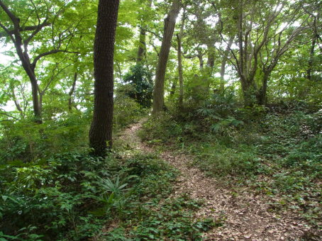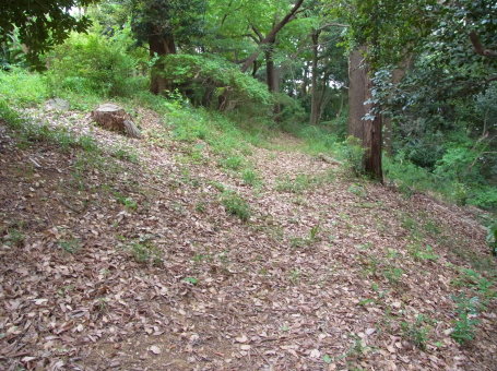 | 西麓から登る切通し。堀跡か。 | |