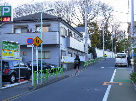 | 祐天寺南東隅の谷戸前交番前交差点から 祐天寺方面を望む。 |