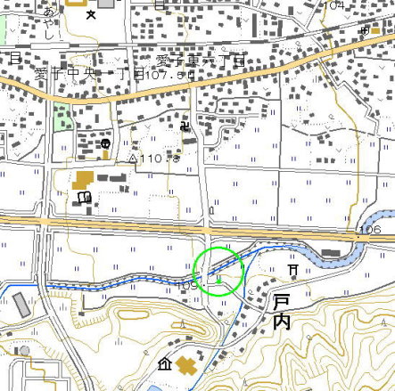 <沿革> 江戸時代中期の『下愛子村風土記御用書出』に、国分氏家臣萱場丹後の居館とある。築城年代や 萱場丹後について、詳細は不明である。 <手記> 斎勝川と戸ノ内の沢の合流点付近にある平地の館です。周辺の圃場整備に伴う斎勝川の流路変更 により、館跡のど真ん中を川が貫通するようになっています。南館は、昔は蛇行していた斎勝川に三方 を囲まれていました。 蛇行していたころの川の流路が、現在三日月湖のような用水路として残っており、ここに館の外郭を 見出すよりほかありません。また、上の地図中の点で示したところに碑が建てられています。 |