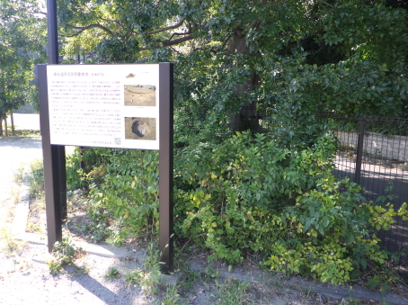 | 小学校脇の古墳墳丘の一部と説明板。 | |