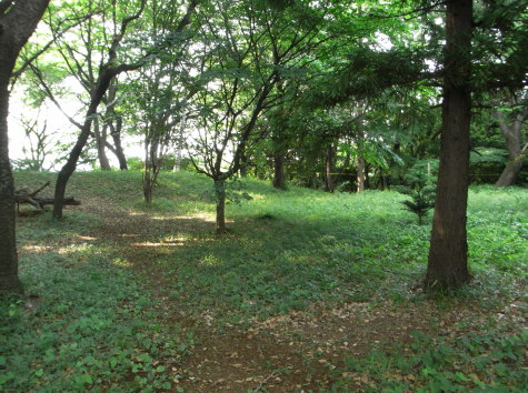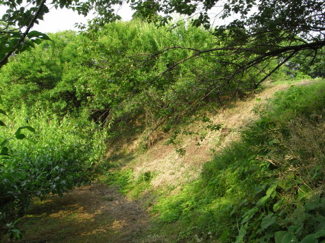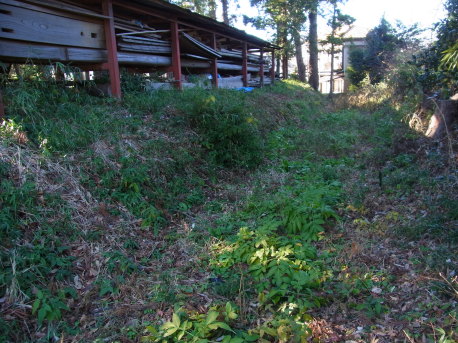 | 七面堂西側の副郭と思われる曲輪の土塁と堀。 | |