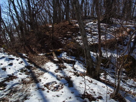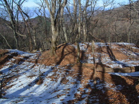 | 御坂山以東の峰先にある虎口状地形。 烽火台の名残か。 |