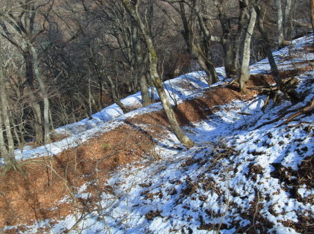 | 御坂山付近の腰曲輪状の削平地。 | |