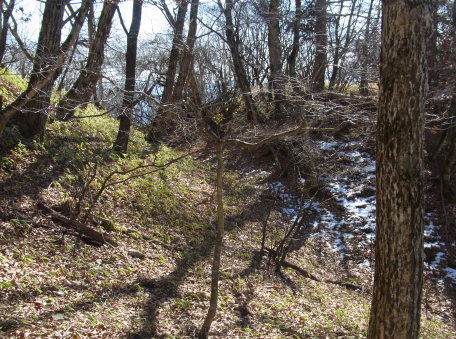 | 同じく直角土塁と虎口(土塁の左側)。 | |