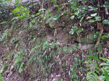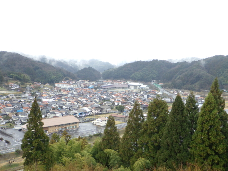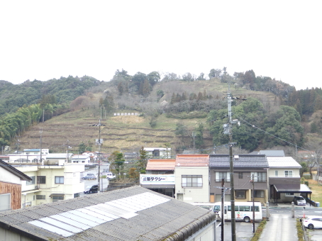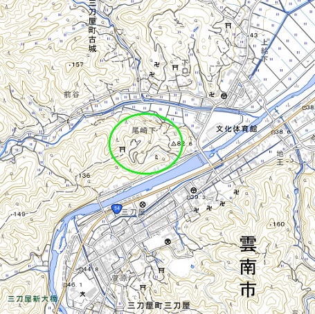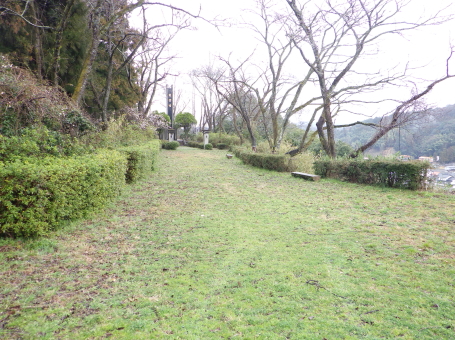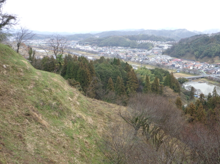 | <沿革> 国人・三刀屋氏累代の居城とされる。三刀屋氏は、信濃源氏流・伊那為扶の孫の諏訪部幸扶が 出雲国飯石郡三刀屋郷の地頭職を得たことにはじまる。実際に下向したのは幸扶の子の扶長で、 承久三年(1221)の承久の乱を経て所領に下り、三刀屋城を築いたとされる。ただし、そのころから 山上に城砦が営まれていたかは定かでない。 建武二年(1335)に足利尊氏が建武政権に反旗を翻すと、諏訪部扶重は足利方に属して戦った。 諏訪部氏がいつごろ三刀屋氏を主として称するようになったのかは詳らかでない。 戦国時代に入って尼子経久が戦国大名化すると、三刀屋氏や同じ出雲の有力国人・三沢氏らと 共に尼子氏に従属した。天文十年(1541)に尼子晴久が毛利氏の吉田郡山城攻略に失敗すると、 三刀屋久扶は三沢氏らと共に大内方に寝返ったが、同十二年(1543)に大内義隆が尼子氏の居城 月山富田城を攻めて大敗すると、両氏そろって尼子氏に帰参した。 永禄五年(1562)、石見山吹城の本城常光が毛利元就に降伏すると、久扶や三沢為清も毛利に 転じた。三刀屋城は元就の出雲侵攻における前線および兵站拠点となり、翌六年(1563)の地王峠 の戦いをはじめとしてしばしば尼子氏の攻撃に晒されたが、久扶らはよく凌いで防ぎきっている。 毛利氏幕下の三刀屋氏は、ときに軍役を拒否するなど有力国人としてある程度の独立した権限を 有していた。しかし、永禄九年(1566)に月山富田城が落城して尼子氏が滅亡し、同十二年(1569) に尼子再興軍が出雲へ上陸すると、久扶は毛利家への忠誠を誓う起請文を提出させられている。 天正十四年(1586)、毛利輝元らの上洛に随行した際、久扶は徳川家康に面会したとして疑いを かけられ、所領を没収されて国外へ追放された。ただし、この年に輝元が上洛したり、久扶が家康と 面会した記録はみられず、実際には家中の有力不穏分子の排除であったとみられている。久扶の 子の孝扶は引き続き毛利家に仕えたが、旧領復帰はならず、久扶追放以降の三刀屋城の扱いは 定かでない。 慶長五年(1600)の関ヶ原の戦いによって毛利家が防長2国へ減封となり、堀尾吉晴が出雲一国 を与えられると、三刀屋城は吉晴によって改修されたとみられている。一説に、吉晴は三刀屋城を 居城としようとしたともされ、松江城が完成するまでには廃城となったと推測される。 <手記> 三刀屋川と古城川に挟まれて細く伸びる峰が三刀屋城跡です。当時の三刀屋川はもっと南側の、 現在町場となっているあたりを流れていたそうです。主城域は桜の公園となっており、途中の道は 狭くすれ違い不可で恐いものの、中腹の伝馬場跡上に駐車場も用意されています。あと、城内には 猿がいました^^; 伝馬場跡の向かいには伝馬舎跡があり、一画には石垣が残っていました。駐車場も腰曲輪跡と 考えられ、公園化によって全体的に地形の改変がみられるものの、腰曲輪群など遺構は比較的に 分かりやすく残っています。本丸にはやや崩れた櫓台があり、二の丸との間には仕切り状の石垣が 設けられています。二の丸や本丸の南側斜面にも、石垣の痕跡が点在していました。ほかにも堀や 石垣があちこちにあるようですが、雨が降ったり止んだりの天気だったため、あまり深くまでは入りま せんでした。 これらの石垣は、おそらく堀尾氏の改修によって築かれたものでしょう。尼子家臣時代の三刀屋氏 にこれだけの石垣を設けるノウハウはなかったと思いますし、外様であった毛利家臣時代にわざわざ 目を付けられるような大改修に及んだとは考えにくいからです。 また上述のように、堀尾氏が三刀屋城を居城とする計画があったという説があるそうですが、出雲 一国を治める首府として地勢的に適しているとはとても思えません。おそらく、石垣を広く用いている というだけで、地図も読めない自称歴史家が短絡的に唱えているのでしょう。 | |