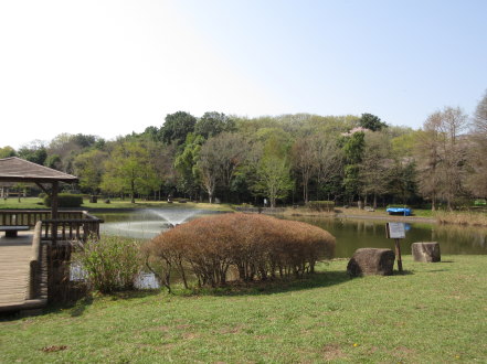 | 城山公園の池越しに三ツ木城跡を望む。 | |