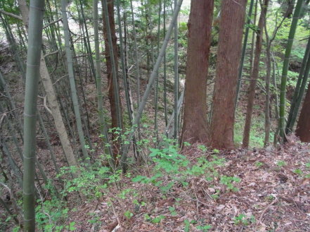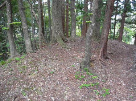 <沿革> 永正七年(1510)、関東管領上杉憲房と、長尾景春の軍勢が宮野で合戦に及び、 憲房勢が敗れている。『日本城郭大系』では、このときすでに宮野城があったもの とし、築城者は憲房の養父顕定と推測している。 永禄三年(1560)、越後の長尾景虎が関東へ侵入したが、宮野は三国峠越えの 中継地点として重要な位置にあるため、このときまでには城が築かれていたものと 考えられる。ちなみに、現在の猿ヶ京の地名は、宮野に宿泊した景虎が命名した ものとされているが、その語源については諸説あり定まっていない。 天正二年(1572)、吾妻郡尻高城主の尻高景家が真田氏に攻め滅ぼされると、 時期は不明だが、景家の子左馬介義隆が上杉氏を頼って宮野城に入った。 天正六年(1578)に御館の乱が勃発すると、宮野城は上杉景虎方の沼田城代 の1人河田重親に攻められた。このときの宮野城主が義隆であったかは定かで ないが、一度は寄せ手を押し返したものの、北条氏の主力が加わるに及んで落城 した。 天正八年(1580)四月、宮野城は真田昌幸の将で沼田城代となった海野輝幸に よって攻められた。このとき、武田氏と上杉氏は同盟関係にあったことから、義隆は 北条側に転じていたものと推測される。義隆は奮戦したものの衆寡敵せず、落去 した先で進退に窮して自害した。 天正十年(1582)に武田氏が織田信長に滅ぼされると、上杉氏が宮野城を奪取 したものとみられる。同年に沼田に進軍した信長麾下の滝川一益の甥滝川益氏 が宮野城を攻めたが、失敗している。 その後の宮野城については不明であるが、遅くとも真田氏・上杉氏双方が豊臣 秀吉に降り、景勝が上野国内の所領を放棄させられた時点で、廃城となったもの と推測される。 <手記> 宮野城は、赤谷湖に突き出した舌状地形上に位置しています。付け根側には、 旧三国街道猿ヶ京関所や、猿ヶ京温泉街があります。 かくいう宮野城址自体も、主郭が温泉宿泊施設となっています。駐車場に説明 板が設置され、ホテル名にも「城」の字が入っているので、城跡であるということ は強く認識されているようです。 本丸の周囲には、土塁と堀が比較的良好に残っています。本丸の北には二の 丸があり、堀は埋められているものの、土塁の一部が残されています。ただし、 この土塁は堀に対して直角に設けられており、旧縄張り図を見ると、武者隠しの ような小区画が形成されていたようです。二の丸の東端には、堀をまたいで学校 関連の宿泊施設があり、その崖側にはわずかながら堀跡と思われる痕跡がみら れます。 赤谷湖は人造のダム湖であり、かつては城の南東麓で西川と赤谷川が合流し ていたものと思われます。麓からみればそれなりの高所にある城だったのでしょう 猿ヶ京関所が城と地続きのところにあったことから、当時の三国街道もほぼ同じ ルートを取っていたものと推測されます。したがって、宮野城は高低差を利用した 城ではなく、やはり峠越えの駐屯や哨戒といった性格の強い城だったものと考え られます。兵の駐留という役割を考えると、城域は関所や街道付近にまで及んで いたと思われますが、そちらの方は宅地化・観光地化が進んでいるので、表面上 の観察からは何ともいえません。 |