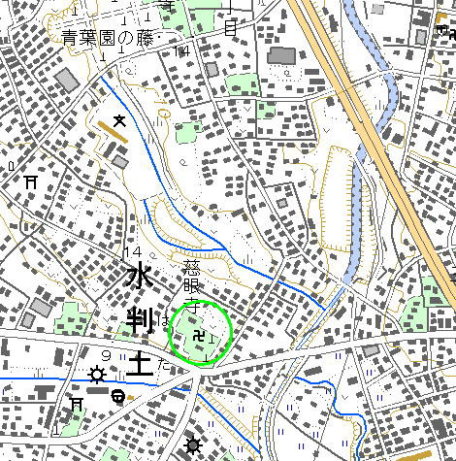 <沿革> 慈眼寺付近には堀の内の字が残り、城館が並立していたものと推測されている。16世紀、 慈眼寺は岩槻城主太田氏の庇護下にあった。そのため、永禄五年(1562)一月二十六日、 北条氏康によって焼き討ちにされたとされる。 慈眼寺はその後復興されるが、館については不明である。 <手記> 水判土館跡の慈眼寺は、鴨川と新川の合流点に突き出した台地の先端にあります。とくに 遺構や碑などはありません。寺の説明板に、氏康に焼き討ちにあったくだりが記されている 程度です。また、慈眼寺は見晴らしの良い高台にありますので、地形からも当時のようすを いくらかうかがうことができます。 |
