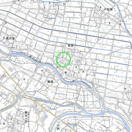 <沿革> 武蔵七党の1つ児玉党の庶流牧西氏の居館址と伝わる。牧西氏は、児玉党宗家 庄家弘の子四方田弘高の子四郎弘季にはじまるとされる。土地の伝承によれば、 弘季は平安時代末期に牧西へ入植して館を築き、八幡神社を創建したとされる。 ただし、『吾妻鏡』には承久三年(1221)の承久の乱で幕府方に属した「庄四郎」 ないし「四方田四郎」の名がみえる。これが弘季を指すとすれば、牧西氏の成立や 居館の建設時期に疑問が生じるものとみられている。 弘季の子三郎義季の存在は認められるが、その後の牧西氏については不明で ある。 <手記> 牧西は元小山川に面した平らな土地で、館は集落の中心付近にあったとされて います。『日本城郭大系』には西辺と北辺の堀跡が水路として残るとありますが、 いったいどれを指すのか分かりません。静かで平凡な集落のなかをひとしきり歩き 回るにとどまりました。 |