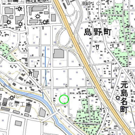 <沿革> 応永年間(1394〜1428)に、島名伊豆守によって築かれたといわれる。島名氏は武蔵七党の 1つ児玉党の一流で、児玉党系図によれば山名親行の子家親にはじまるとされる。島名氏の 動向については詳らかではない。 戦国時代後期、武田氏の家臣であった武蔵国御嶽城主長井政実は、武田信玄の死後この地 に本拠を移したとされる。天正十年(1582)に武田氏が滅ぶと、政実とその子信実は、北条氏に 逐われて越後へと落ち延びた。これによって、城は廃されたとされる。 <手記> 元島名城は、南に井野川、西にその支流の小川が流れる河岸台地上の城です。小川を背に した上図の緑円付近を本丸とし、東は眼聖寺、北は土地改良事業記念碑あたりまでが城域と されています。 土地改良事業によって、遺構はほとんど消滅しています。計画に先立って発掘調査が行われ、 『日本城郭大系』によれば「多大な成果を収めた」とのことですが、現地には城跡を示すような ものもなく、成果のほどをうかがい知ることはできません。 本丸跡と思われる民家の周囲には、堀跡と思われる一段低い区画が巡っています。また、 本丸東側にも堀跡かと思しき低まった田畑が散見されます。発掘調査時には眼聖寺の周囲に 土居が巡っていたそうですが、現在ではそれも失われているようです。 |