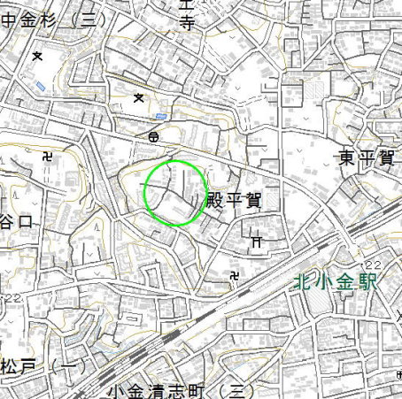 <沿革> 『中世城館調査報告書集成』に記載がある。高城氏3代の居城小金城の支砦群の1つ と思われるが、詳細は不明である。 <手記> 小金城達磨口の谷戸の東側の舌状台地上にあったとされていますが、正確な位置に ついては詳らかではありません。舌状台地を利用していることからその先端付近と考え るのが自然ですが、向台の小字は先端よりも少し手前を指しているようです。ちなみに、 先端付近の小字は天神山というようです。 いずれにせよ、比定地周辺は宅地になっており、表面観察では遺構らしきものは見当 たりません。 |