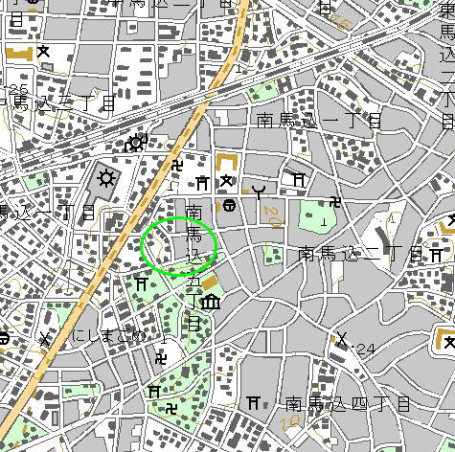 <沿革> 城跡比定地の東にある萬福寺は、梶原景時の創建とされる。寺伝によれば、正治二年(1200)の 梶原景時の変で滅ぼされた梶原一族のうち、景時の孫景望が鎌倉幕府に赦され、旧領の大井村を 与えられた。元応二年(1320)、火災により萬福寺は焼失し、ときの当主梶原景嗣が馬籠村に寺を 再建し、居城も馬籠に移したとされる。これが正しければ、馬込城はこのときに築かれたものと推測 される。ただし、梶原氏の系図に景嗣の名はみられない。 応永年間(1394〜1427)の鎌倉公方の奉行人に梶原持景の名があり、『梶原系図』によれば、 持景の子経景は「武蔵国荏原郡馬篭」に住していたとされる。『系図』では経景の子時景と続くが、 幕府奉行人としての馬込梶原氏の動向は、戦国時代に入るころには途絶えている。 永禄二年(1559)に編纂された『小田原衆所領役帳』によれば、梶原助五郎が馬込村に32貫文余 の役高を有している。助五郎と奉行衆梶原氏の関連は不明だが、一族縁者の可能性は十分に考え られる。馬込城は助五郎の居城であったと類推されているが、確証はない。 <手記> 馬込城は周辺に複雑に入り組む丘陵の一端に築かれた城で、東を除く三方が斜面となっています。 とくに南側の谷は深く、かつて沼や深田となっていたそうです。また北側の谷には東西を結ぶ古道が 走り、城に沿うように南坂と呼ばれる急坂があります。 東は北野神社、西は湯殿神社、南は白田坂下、北は区立馬込図書館までをおおよその城域とし、 根小屋(生活区域)は城の西側に設けられていたそうです。 城跡を示すようなものは、とりたてて残っていません。湯殿神社や南坂などの地形要素から往時を 偲ぶのみです。城の北側の長音寺からは、冬晴れの日には富士山が望めます。 |