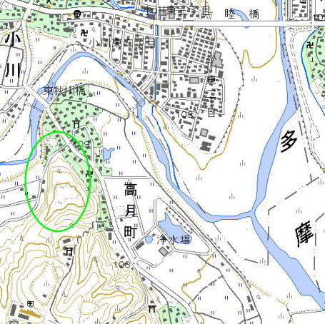 <沿革> 長禄二年(1458)、武蔵国守護代大石顕重によって築かれたといわれる。当時、関東は 享徳の乱のさなかにあり、顕重の主家である関東管領上杉氏と、鎌倉公方足利成氏の 対立が先鋭化していた。 その後、高月城は大石氏の居城となったとされるが、その根拠として諸文献で取り上げ られているのは、聖護院門跡道興准后の『回国雑記』の記述である。准后は、文明十八年 (1486)から翌年にかけて、「大石信濃守といへる武士の館」へ招かれている。その館に ついて同書では、「庭前に高閣あり、矢倉など相かねて侍りけるにや 遠景勝りて 数千里 の江山眼の前に面きぬとおもほゆ」とある。この記述がもっとも適合するのが高月城である とするものであるが、根拠としては断定に足るものではない。大石氏は二宮城から高月城 へ居城を移したと一般的にいわれるが、確証があるわけではない。 結局のところ、高月城に関する史料はほとんどないに等しいといえる。定説では、顕重の 子定重が大永元年(1521)に滝山城を築き、高月城から移ったとされる。 廃城時期については不明である。 <手記> 高月城は、秋川の湾曲部に突き出た加住丘陵の突端を利用して築かれています。鋭角 二等辺三角形のような形状の丘で、南西のみ細尾根をして地続きとなっています。 登城口は、城内の北端近くにあるホテルの向かいにあります。このホテルは結構前に 廃業したようで、廃墟マニアが喜びそうな感じになっています。このホテルの裏手に大きな 空堀があり、城内にいくつか残っている堀のなかでも、ここのものがもっとも良く残っている ように思われます。 主郭へは、曲輪の間を縫うように走るつづら折れの土手道を上ります。主郭は、それまで 抜けてきた腰曲輪に比べて格段に広く、おそらくここに城主の居館も営まれていたものと 推測されます。主郭周囲は土塁で囲われていたようで、南面のものが良好に残っています。 その先は人の手があまり入っていないようで藪がひどいのですが、細尾根を断ち切る堀切 が設けられています。 高月城は大石氏の居城といわれていますが、確証があるわけではなく、推測の域を出て はいません。しかし、大石氏のもとの居城とされる二宮城が、法林寺館ないしその周辺の 城館とすると、前時代的な武士の館である二宮の城からより防御力の高い高月城へ居を 移したというのは、論理的には妥当な推測と思われます。他方で、高月城から滝山城への 移転については防衛上の理由からといわれますが、これには問題があるように思います。 高月城も滝山城も南方が弱点と考えられるため、滝山への移転は何ら防衛上の問題克服 にはつながらないと思われるからです。もし、高月城から滝山城へ移転したというのなら、 詳細は滝山城の項で説明しますが、その理由は経済的なものであったと考えています。 また大石氏の滝山城移転後、高月城は廃城になったといわれています。しかし、大石氏 時代には廃城となっていたかもしれませんが、その後の北条氏時代には再度取り立てられ ていたのではないかと考えています。高月城の西には、「新城」ないし「二城」と呼ばれる 戸吹城があります。この城は、永禄十一年(1568)以降一時的に武田氏との関係が悪化 した際、檜原城・戸倉城から滝山城へと至るルートの防衛強化のために築かれたと考え られます。だとすれば、同じ経路上にある高月城も、改修を受けて再利用されたとみるのが 妥当ではないかと推測しています。そして、北条氏照が滝山城から八王子城へ移った際に、 再度廃城となったのではないでしょうか。 いずれにせよ、遺構は明確であるのに史料がほとんどないため、中世色を濃く残す謎の 城といえるでしょう。 |