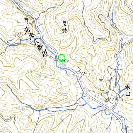 <沿革> 『新編武蔵国風土記稿』には、「相伝ふ 北条氏照の家士長井六右衛門の居跡なりと 又是に 八幡の小祠あり 古への鎮守なりと云」とある。また『武蔵名勝図会』によると、長井寺が長井氏 の居館跡とされる。 長井六右衛門および長井氏について、詳細は不明である。 <手記> 『記稿』によれば、長井館は字長井の小字日影というところにあったとされています。『日本城郭 大系』には館跡要図が掲載されていますが、それがどのあたりを指すのか、目印となるようなもの がまったく書き込まれていません。もう1つの手がかりとして、館跡の南に「馬場」「的場」の小字が あるとされています。今も残る長井寺の正面付近に架かる橋は的場橋と呼ばれ、欄干には武士 の意匠があしらわれています。これより北側ということでしばらく歩いてみたのですが、それらしき 地形が見当たらず、地元の方に尋ねてみました。 その結果、その方がこの辺ではないかというのが上記の箇所です。目印は、「日の出山荘入口」 と書かれた看板の建つ道の分岐点です。後になって知ったことですが、この日の出山荘というのは、 中曽根康弘元首相の旧別荘、いわゆる「ロン・ヤス関係」の地だそうです。 閑話休題。館跡は道路沿いに数軒の民家が建ち並ぶ背後に位置し、通りからは地形をうかがう ことはできません。民家の敷地内を通過しないと行けないような感じだったのですが、北端付近に 小さな祠があるのが見え、そこから斜面に取りつきました。登ってみると、『大系』の要図にあるの とほぼ同様の地形で、大久野川とその支脈に挟まれた舌状の台地先端になります。ここが『記稿』 の館跡とみて間違いないものと思われます。先の祠は、館跡の北西端附近の頸部にあたり、土塁 状の土盛りの上にあることから、『記稿』にある八幡の小祠に相当するものと考えられます。 館内は、かつては畑だったようですが、今では草原となっています。中ほどに段差が見受けられ るのですが、畑のものか館跡の遺構かは判別できません。その他、堀や土塁などの造作は認め られませんでした。 『図会』で比定地とされる長井寺は、三方を峰に囲まれ、前面に大久野川が流れ、中世の居館 としては十分ありうべき地形といえます。前出の的場橋を渡った西側の小谷戸は、先の地元の方 のお話では小字を「的場入」といい、領主の武士が弓馬の鍛錬を行ったという伝承が残っている そうです。ただ、ここは『記稿』の館跡とも長井寺とも少々離れたところにあり、わざわざ館と別に ここに的場を設ける必要があったかはいくぶん疑問です。 長井は、北の梅ヶ谷峠を越えて多摩川上流域と平井川・秋川流域を結ぶ街道の要衝に位置し ています。長井氏の出自については不明ですが、あるいは『記稿』の館跡と長井寺、そして的場 の3ヶ所にそれぞれ城館施設を有するそれなりに大きな勢力を有する一族だったのかもしれない と、訪れてみて感じました。 |