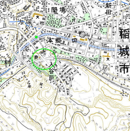 <沿革> 『新編武蔵国風土記稿』には、「昔長太郎と言人居住の地なりと、されどその時を伝へず、『東鑑』に のせたる長沼五郎宗政など言へるものゝ一族などにや」とある。 長沼氏は、武蔵七党の1つ西党の流れを汲み、日奉宗忠の曾孫職任にはじまるとされる。長沼氏の 本貫地については八王子市長沼町の長沼館にあったともいわれている。また、長沼氏に長太郎という 人物がいるのかも定かではない。 長沼宗政は藤原秀郷系小山氏の一族で、下野国芳賀郡長沼に発する人物である。そのため、宗政 を稲城の長沼城と結び付けるのは困難と思われる。『日本城郭大系』では、小手指原の戦いにおいて 長沼判官の名が『太平記』にみえるとして、これとの関連も指摘している。ただ、この長沼判官も小山 氏系長沼氏と推測される。 <手記> 長沼城址は、現在京王線稲城駅となっており遺構は消滅しています。城跡からは外れた鶴川街道 沿い(上の地図の緑点)に、城址碑が建てられています。その他には、稲城駅の上に架かる陸橋の 名前が「城址橋」となっているのが、申し訳程度のよすがです。古地図を参照すると、南から三沢川へ 向かって延びる細い尾根があったようで、これを利用した小城砦であったことは容易に見て取れます。 城主について、長沼宗政と結び付けるのは無理があるでしょう。可能性があるとすれば、むしろ西党 長沼氏の方であり、伝承にある長太郎とはあるいは「長沼太郎」の略されたものかもしれません。 |